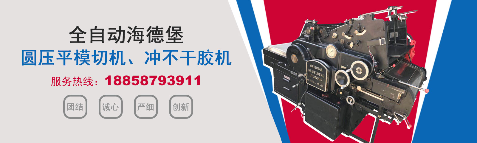 瑞安市恒柯機械廠(www.wzhkjx_com.hajiaodou.cn)是國內專業制造銷售全自動模切機,全自動燙金機,圓壓平模切機,圓壓平燙金機,滾筒燙金機,沖不干膠機,海德堡凸印機.銷售的產品系列規格齊全,產品具有速度快,壓力均勻,套印準確等特點。